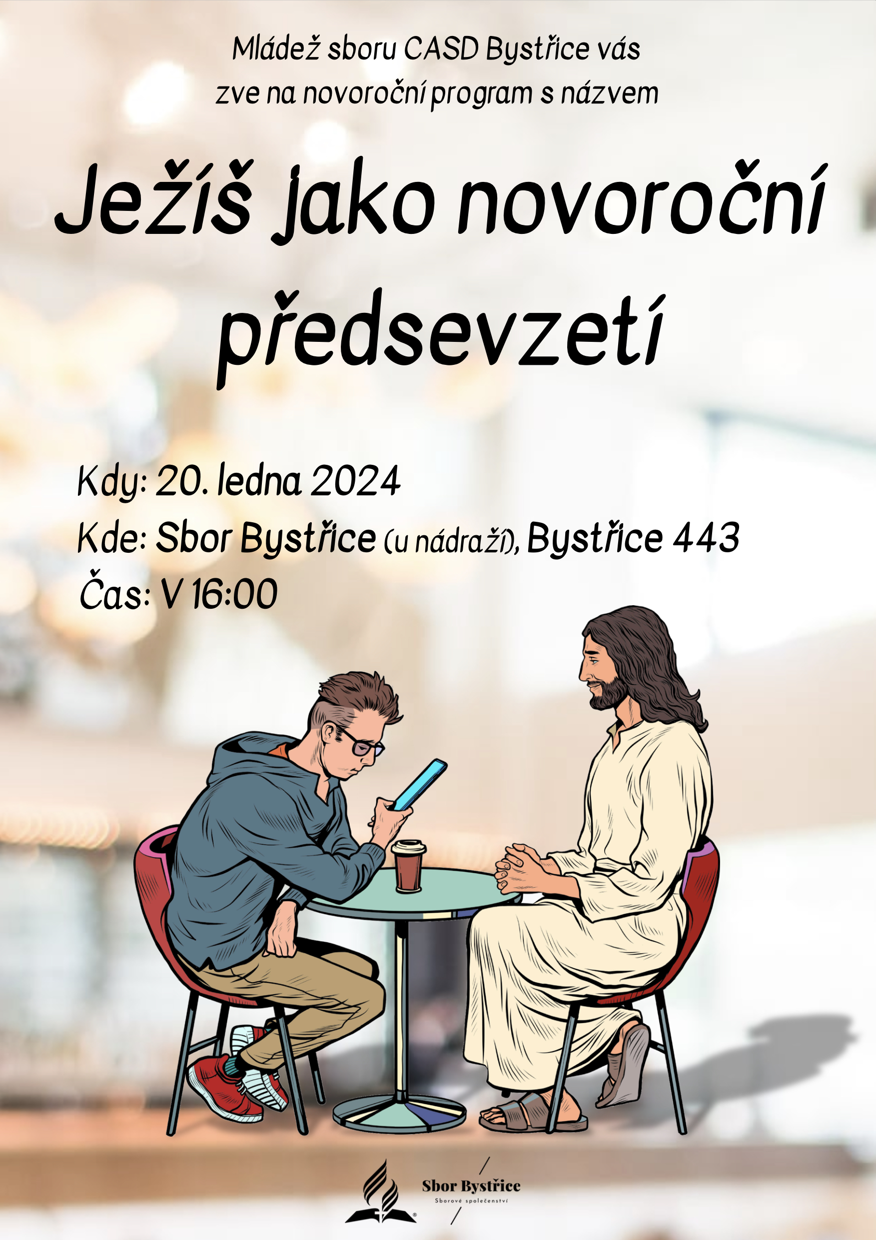 Přijměte pozvání na odpolední novoroční program, ve kterém vám mládež z Bystřice znázorní důležitost každodenního rozhodnutí setkat se Ježíšem. A kdy jindy si důležitost tohoto rozhodnutí uvědomit, když ne na nový rok? Ježíš má pro nás každý den vyhrazený čas u svého stolu, přijmeme toto pozvání?